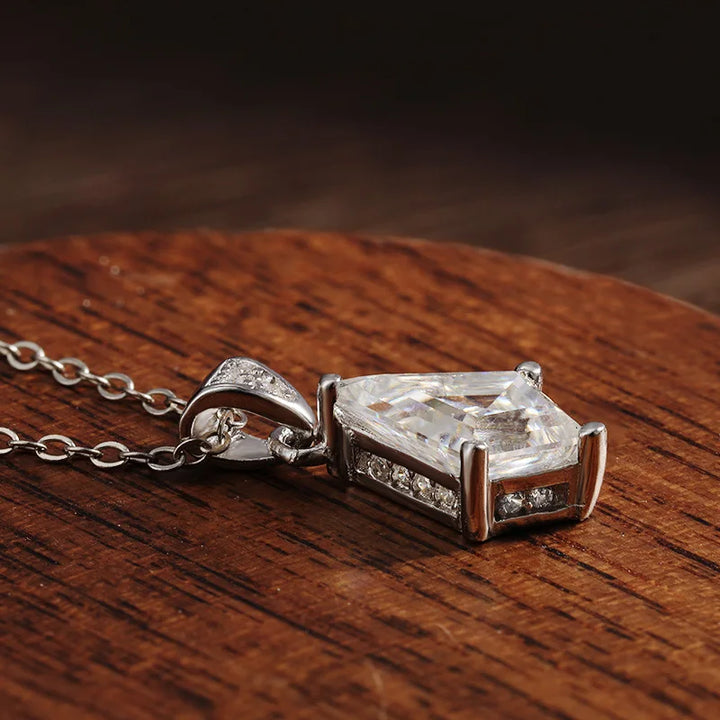 【925 Sterling Silver】This Emerald Cut Moissanite Pendant Necklace is made with 18K White Gold Over Sterling Silver, allowing the beauty of the Synthetic Moissanite Diamond to truly shine. This Moissanite Diamond Pendant are an enchanting, effortless look he"ll love.