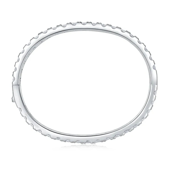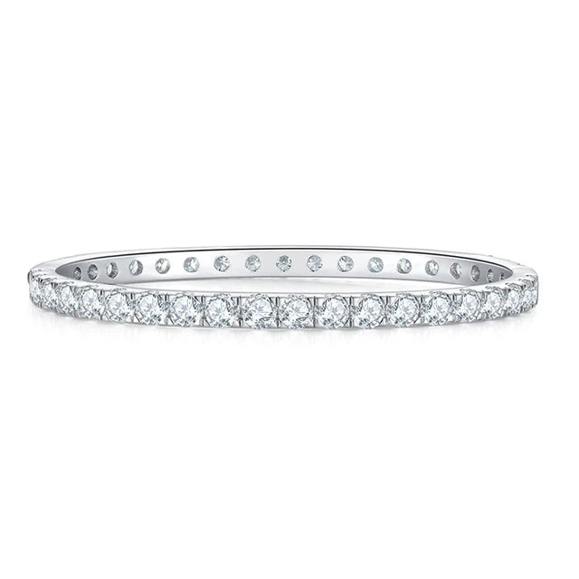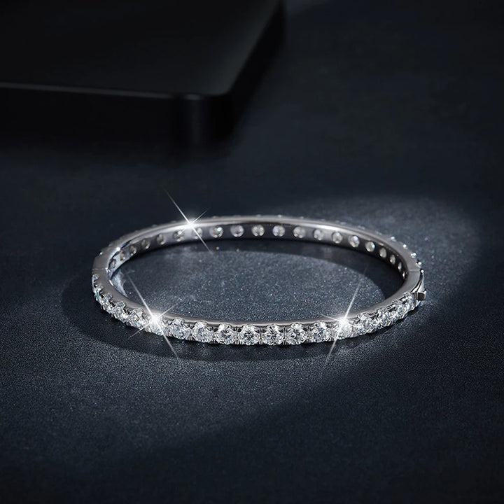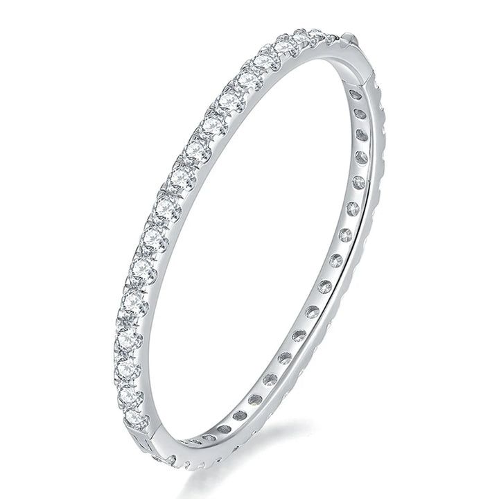 【Gemstone 】Round Cut Lab Created Moissanite Diamond Having Clarity Of VVS, Moissanite Diamond Color : D-F, Setting : Pave Setting Type, Excellent Cut, Stamped With 925. This tennis bracelet secures with a box-with-tongue-and-safety clasp.