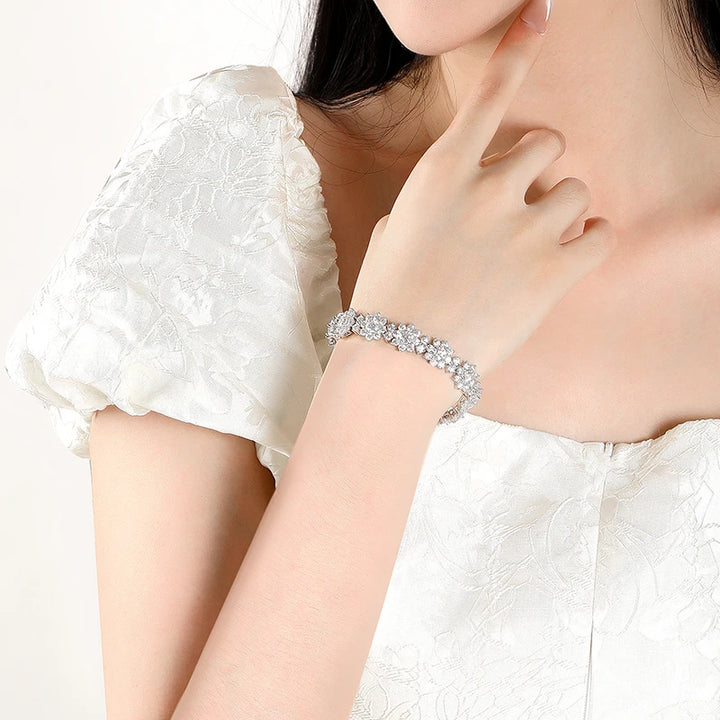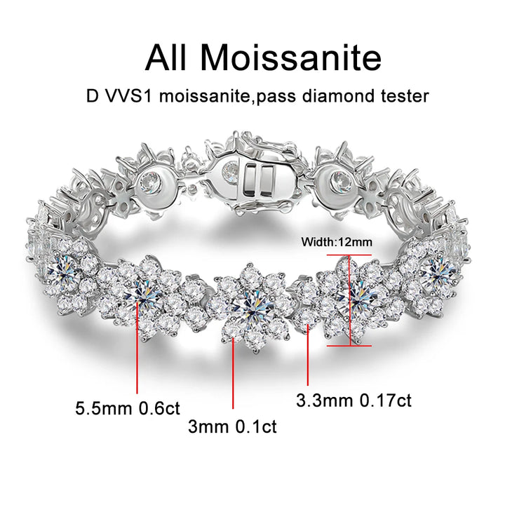 KNOBSPIN D VVS1 Moissanite Tennis Bracelets for Women Sunflowers Design GRA certified Luxury Wedding Jewelry 925 Silver Bracelet